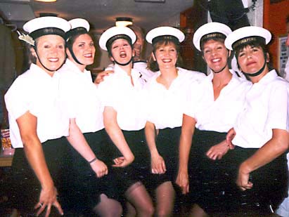 The British warship H.M.S. Pinafore is at anchor off Portsmouth. The sailors are on the quarterdeck, proudly "cleaning brasswork, splicing rope, etc."